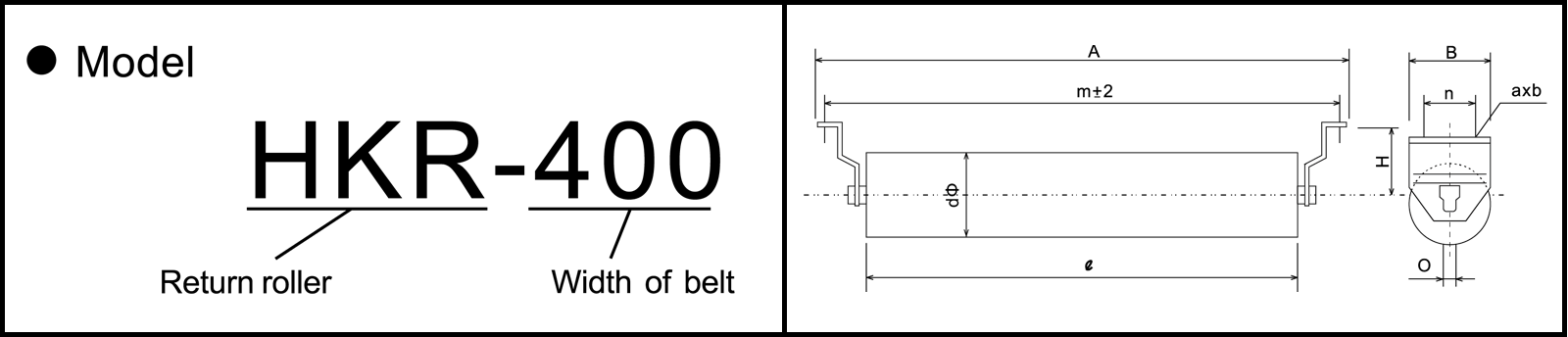 | Model | Širina pojasa | d | 0 | m | A | H | B | n | O | axb |
