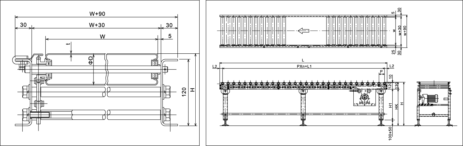 | Širina valjka | W (mm) | 200 ~ 600 | 200 ~ 600 | 200 ~ 600 | 700 ~ 1.200 | 400 ~ 800 |