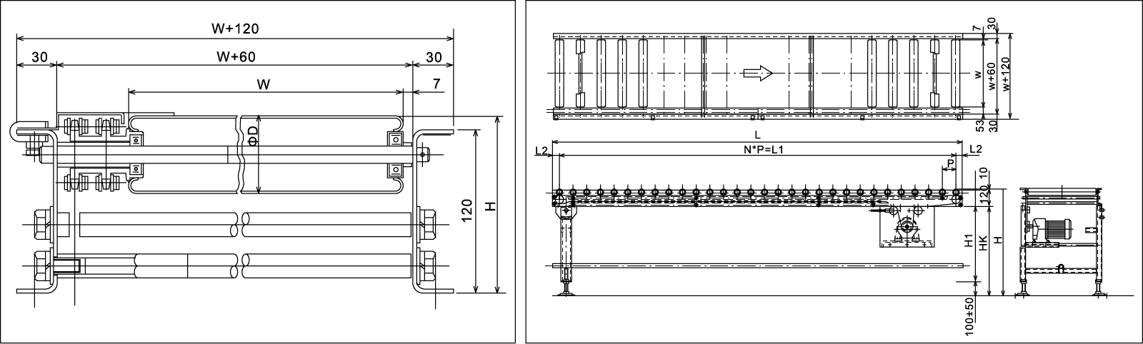 Lanac pokretan koturaljka je uobičajeni pokretač valjka. Podijeljen je u jednoj i dvostrukim tipovima lančanika na temelju konfiguracije lanca. Potrojnici s jednim lancem prikladni su za gusto nabijene valjke, dok se dvostruki lančani transporteri široko koriste i organiziraju prema nagibu lanca.