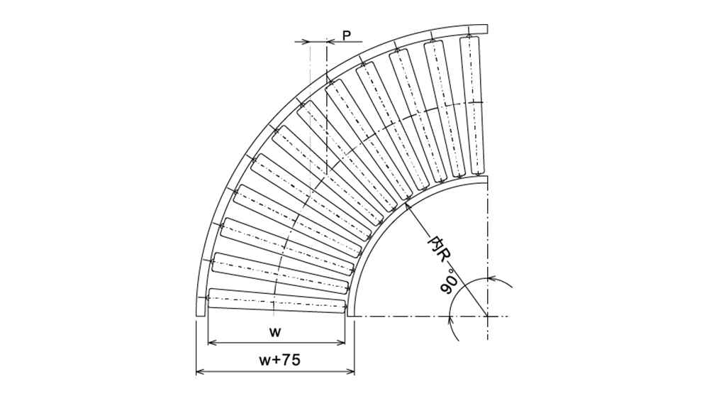 Poznat i kao transporter valjka za krivulju, transporter konusa konusa omogućuje kutove okretanja od 30, 45, 60, 90 i 180 stupnjeva. Uglavnom se koristi za promjene smjera u transportnim linijama, s 30, 45 i 60 stupnjeva koji se često koriste za razgranavanje i spajanje transportera. Ovaj transporter je lagana vrsta s opterećenjem uglavnom ne veće od 200 kg.