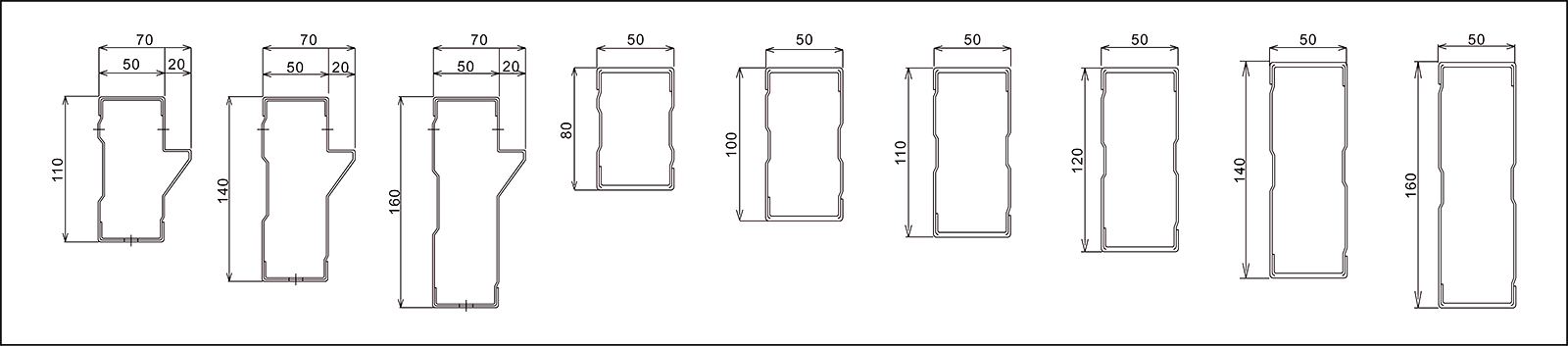 | Visina širine/snopa | 2000 | 2300 | 2500 | 2700 | 3000 | 3200 | |