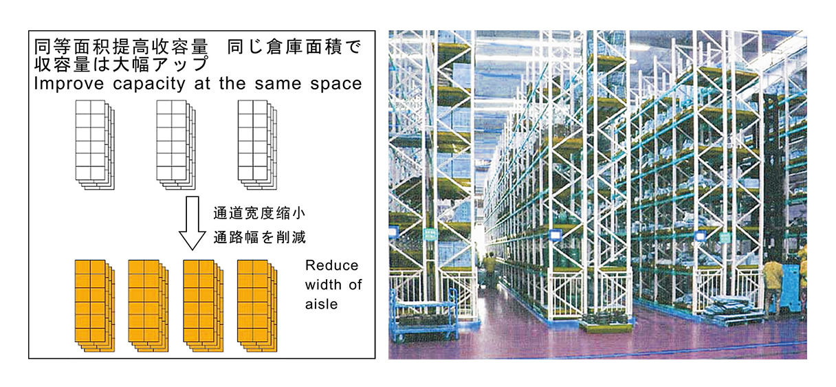 Različiti vodič može se instalirati prema odgovarajućim viljuškarima, koji mogu smanjiti širinu prolaza i koristiti prostor.