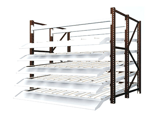 Funkcije FLFO gravitacijski stalak temelji se na nagibu (4%) klizačke staze i mrtvoj težini robe. Gravitacijski ravni valjci koriste se kao potpora za klizanje prema dolje. LTS propusnost je visoka. Skladištenje i preuzimanje može se obaviti istovremeno, pa se povećava brzina protoka robe. Svrha LT je pogodan za paletu ili skladištenje i dohvaćanje velikog volumena, manje vrsta robe. Svaka klizna staza koristi se za skladištenje i dohvaćanje kao jednu vrstu robe. LT ima široku primjenu u industrijama poput mehaničkih, kemijskih, elektroničkih, pića i hrane itd.