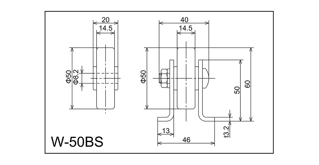 | W-50B | 50x14.5x8.2x20 | M8x35l | 50x46x13x40x3.2 | 60 | 1000 · 2000 · 3000 | 75 · 100 · 150 | 80 | C |