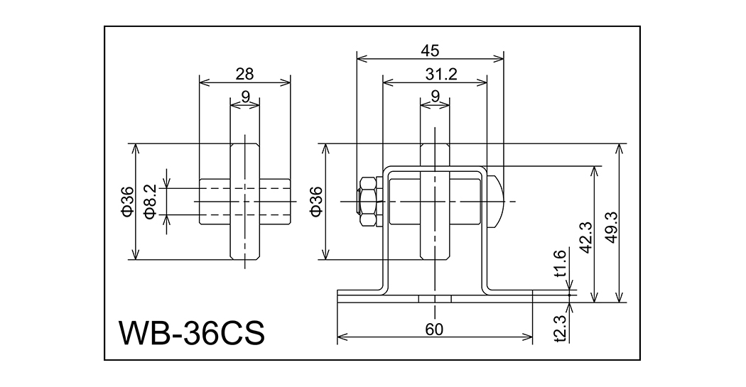 | WB-36cs | 36x9x8.2x28 | M8x40L | 42.3x60x31.2x45x2.3 | 49.3 | 1000 · 2000 · 3000 | 50 · 75 · 100 | 40 | L |