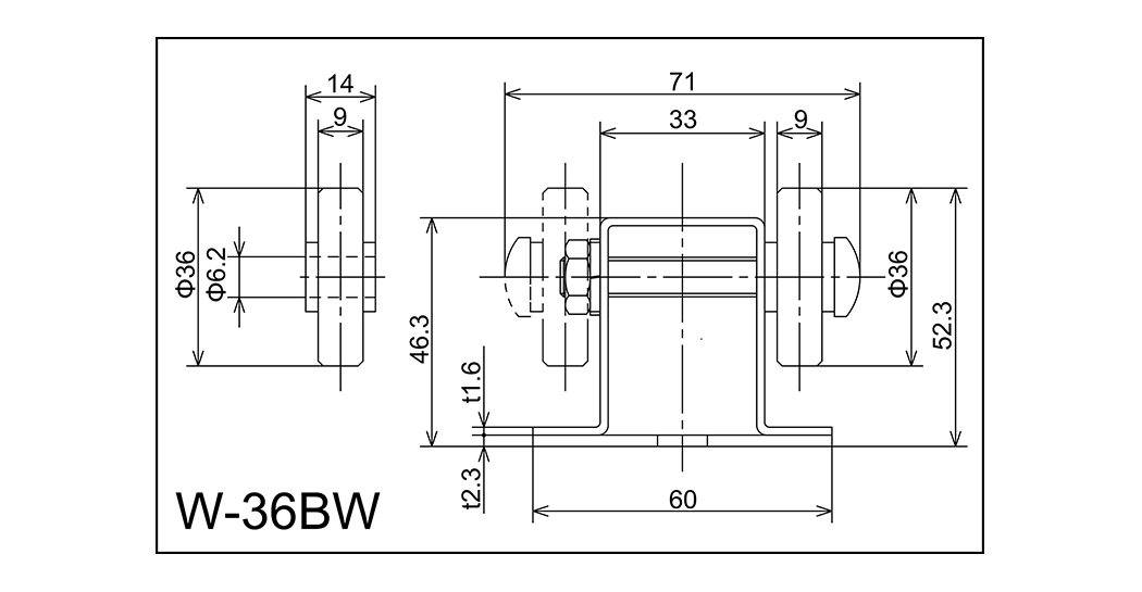 | W-36BW | 36x9x8.2x14 | M8x55l | 46,3 × 60 × 33 × 71 × 2: 3 | 52.3 | 1000 · 2000 · 3000 | 50 · 75 · 100 · 150 | 40 | K |