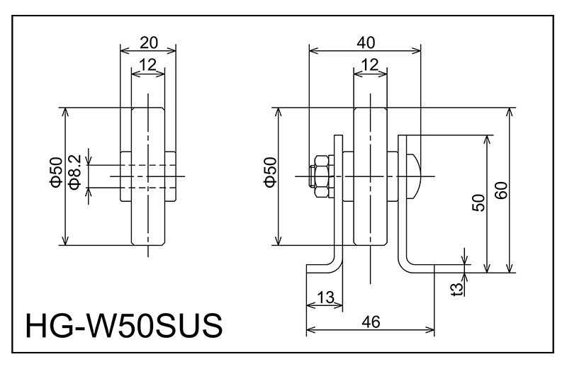 | HG-W50SUS | 50x12x8.2x20 | M8x35l | 50x46x13x40x3.0 | 60 | 1800 · 2400 · 3000 | 75 · 100 · 150 · 200 | 80 | C |