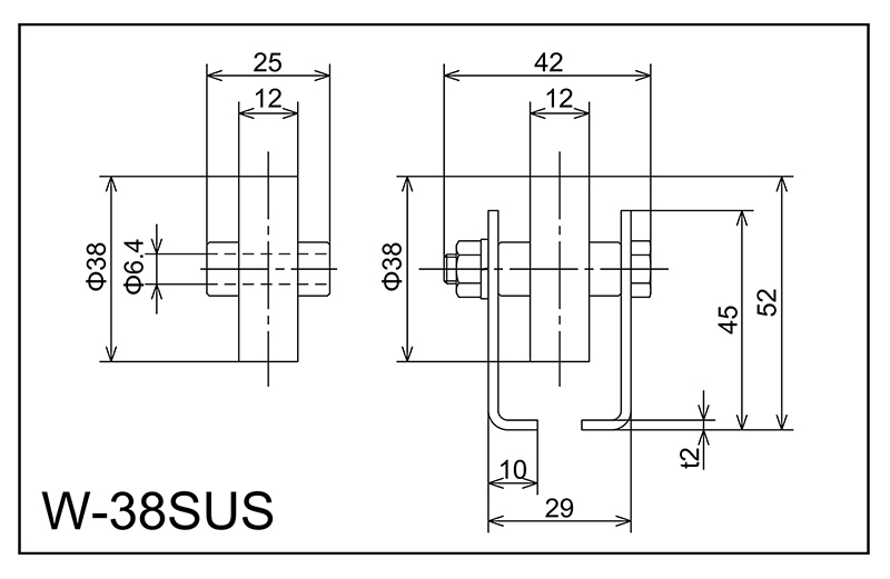 | W-38SUS | 38x12x6.4x25 | M6x38l | 45X29X10X42X2.0 | 52 | 1800 · 2400 · 3000 | 50 · 75 · 100 · 150 | 20 | A |