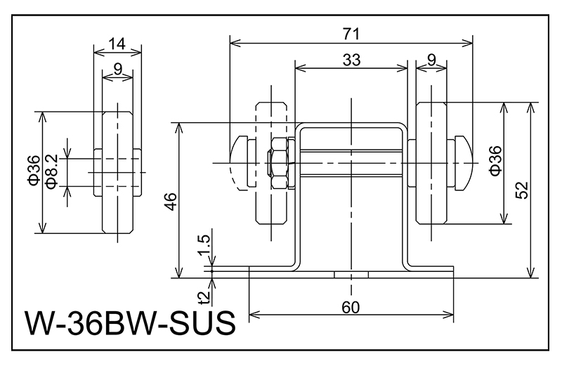 | W-36BW-SUS | 36x9x8.2x14 | M8x55l | 46x60x33 × 71 1.5 2.0 | 52 | 1800 · 2400 · 3000 | 50 · 75 · 100 · 150 | 40 | K |