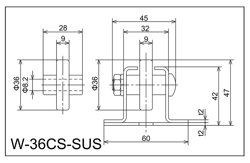 | W-36CS-SUS | 36x9x8.2x28 | M8x40L | 42X60X32X45X2.0 | 47 | 1800 · 2400 · 3000 | 50,75 · 100 · 150 | 40 | J |