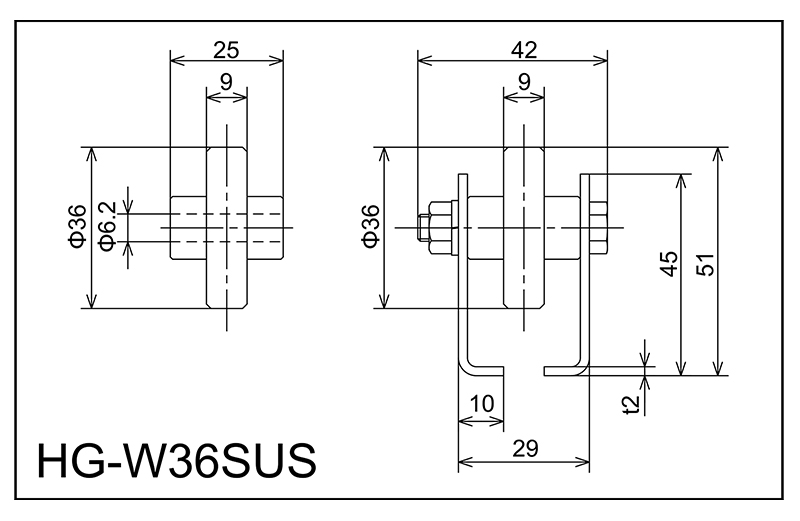 | HG-W36SUS | 36x9x6.2x25 | M6x38l | 45X29X10X42X2.0 | 51 | 1800 · 2400 · 3000 | 50 · 75 · 100 · 150 | 40 | A |