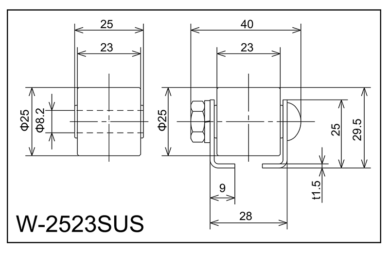 | W-2523SUS | 25x23x8.2x25 | M8x35l | 25x28x9x40x1.5 | 29.5 | 1000 · 1500 · 2000 | 30 · 35 | 50 | A |