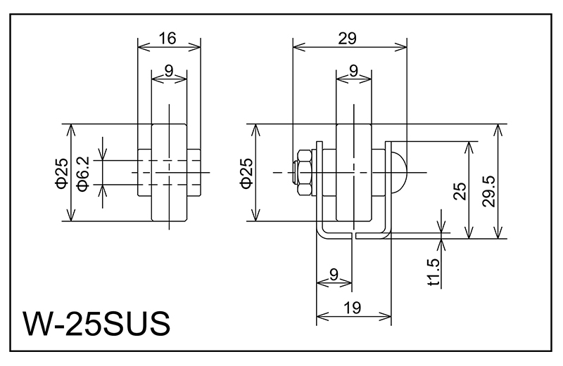 | W-25SUS | 25x9x6.2x16 | M6x25l | 25x19x9x29x1.5 | 29.5 | 1000 · 1500 · 2000 | 30 · 35 | 30 | A |
