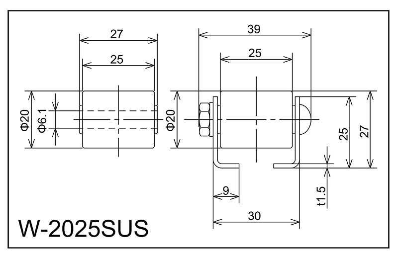 | W-2025SUS | 20x25x6.1x27 | M6x35l | 25x30x9x39x1.5 | 27 | 1000 · 1500 · 2000 | 25 · 30 · 35 | 40 | A |