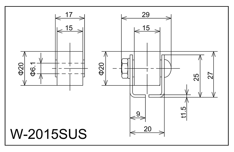 | W-2015SUS | 20x15x6.1x17 | M6x25l | 25x20 × 9x29x1.5 | 27 | 1000 · 1500 · 2000 | 25 · 30 · 35 | 30 | A |